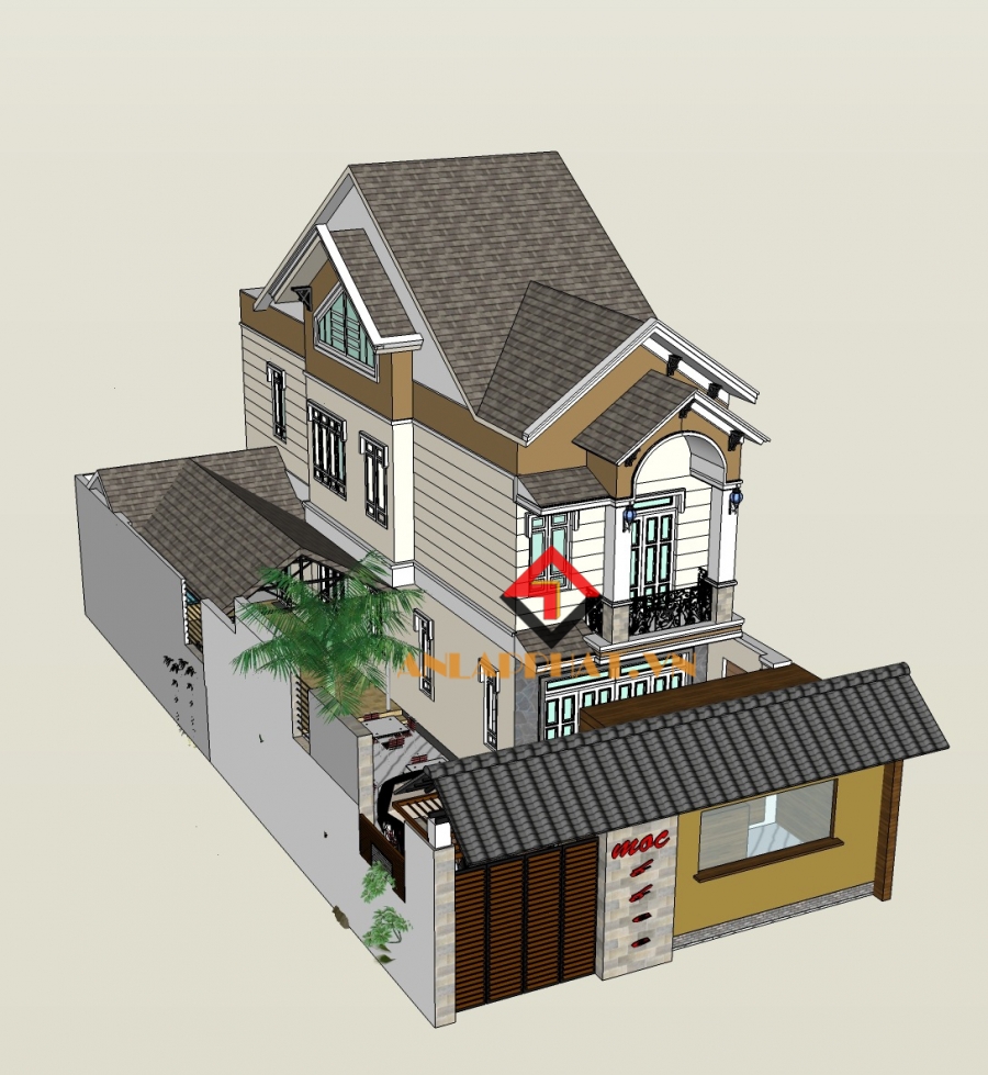 Mẫu biệt thự Mái thái 9x26m.